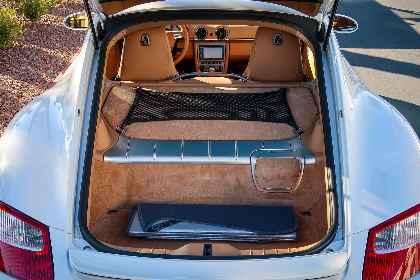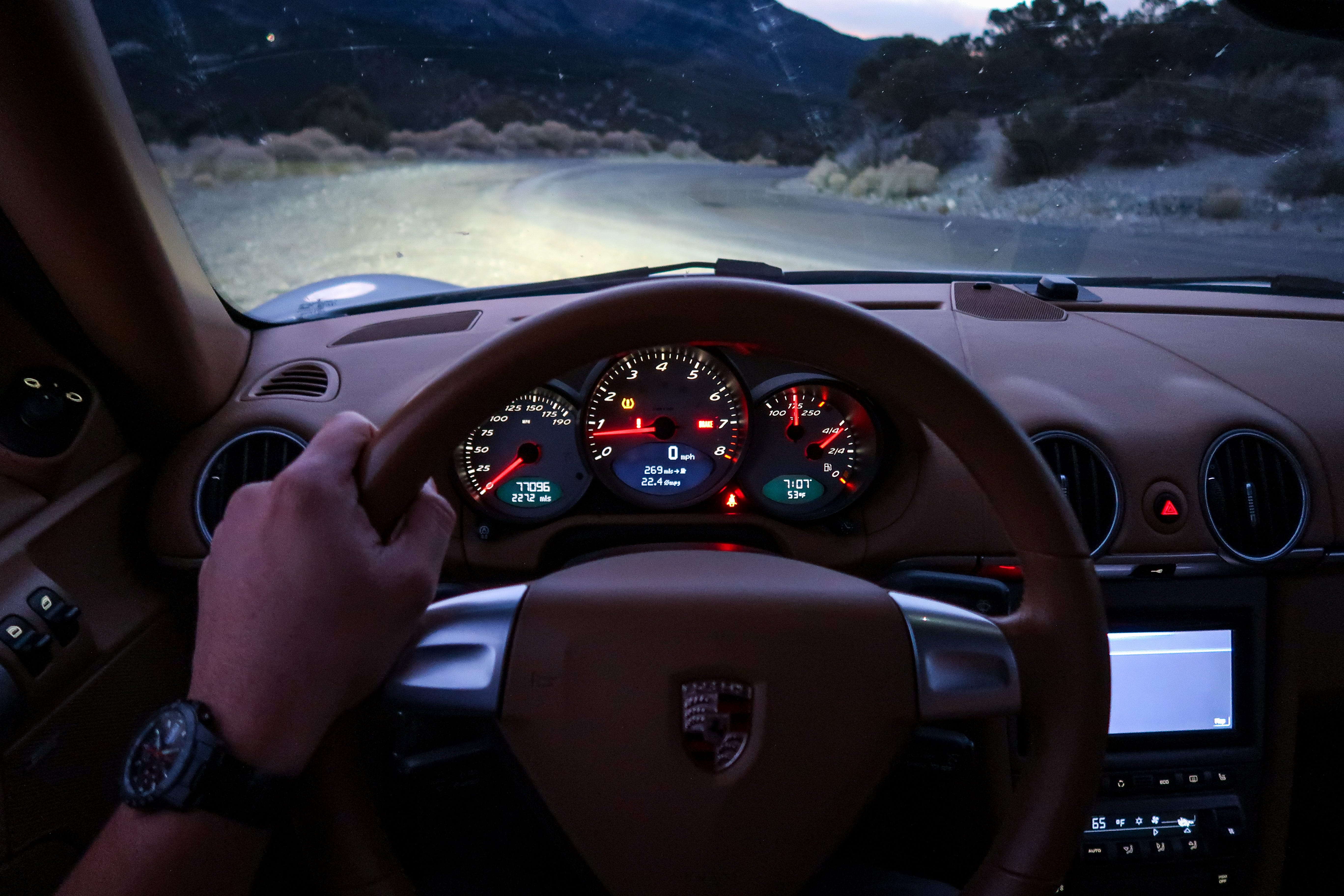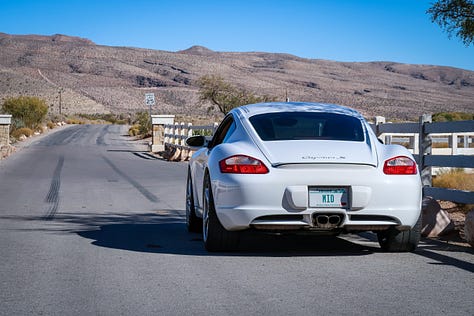 Starting with a jaunt through Vegas’ suburban grid, highlighted the Cayman’s unexpected knack for mundanity. Plush seats, usable cupholders and storage cubbies, and generous storage from the trunk and frunk can genuinely make this someone’s only car if they hate playing DD for their friends. It enabled Sanders to cover thousands of miles over tens of hours without issue during his grand tour from Boise to Salt Lake City to Las Vegas and back.