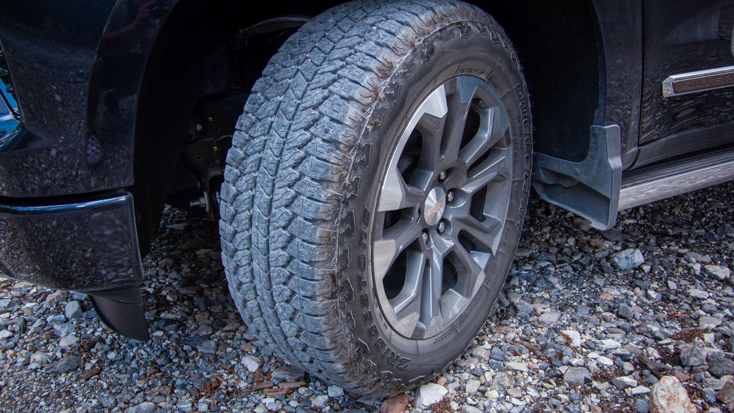 Standard wheels are 20-inches, yet this press truck came shod in some handy Bridgestone all-terrains.