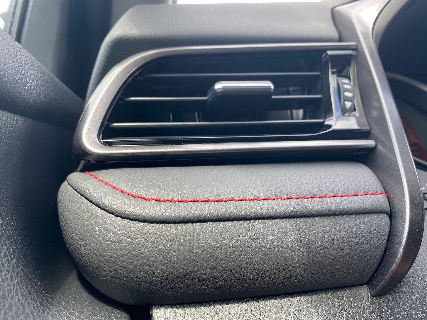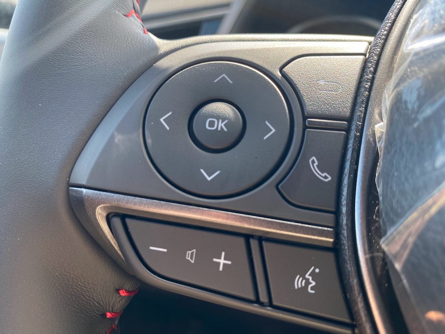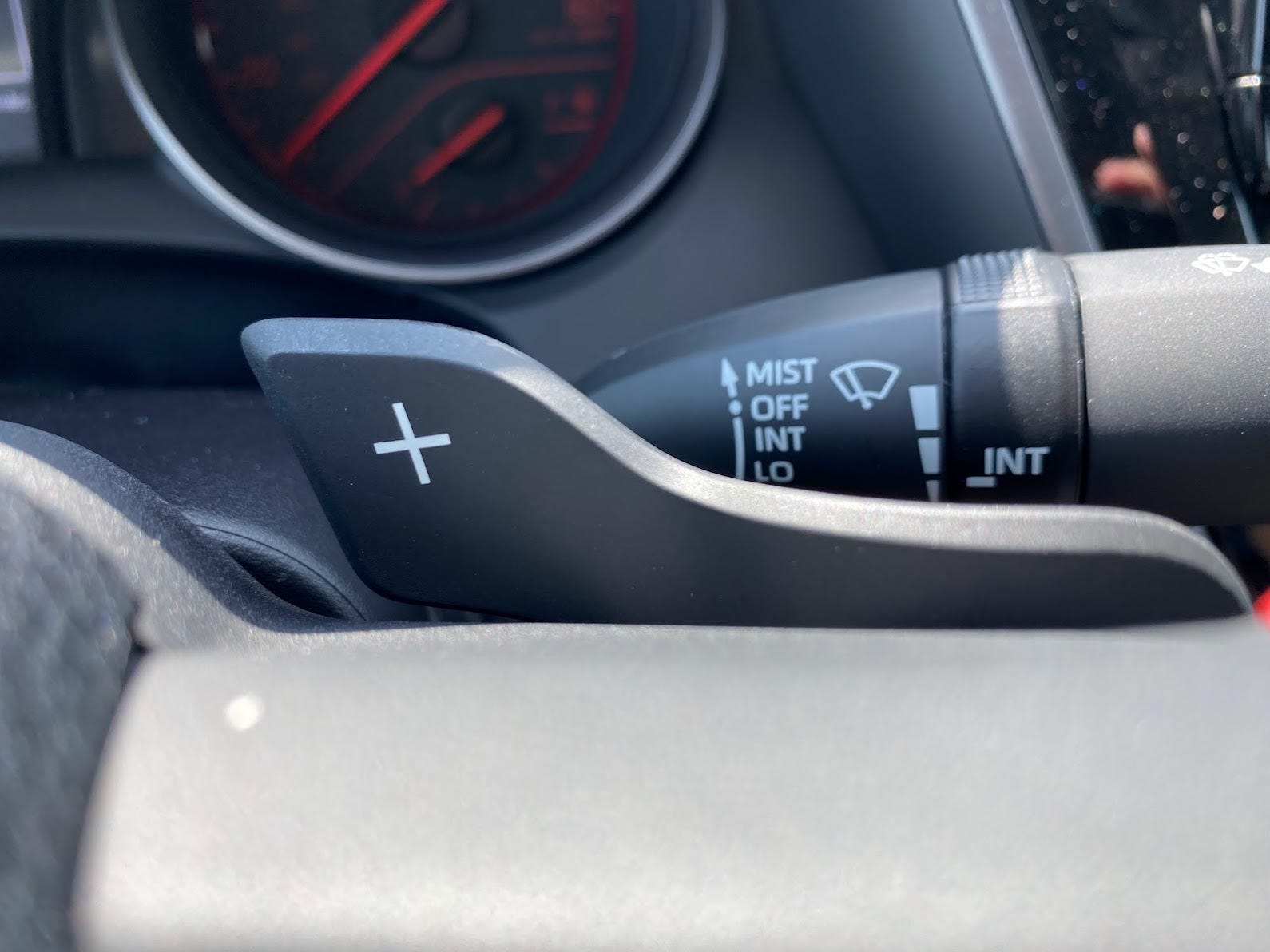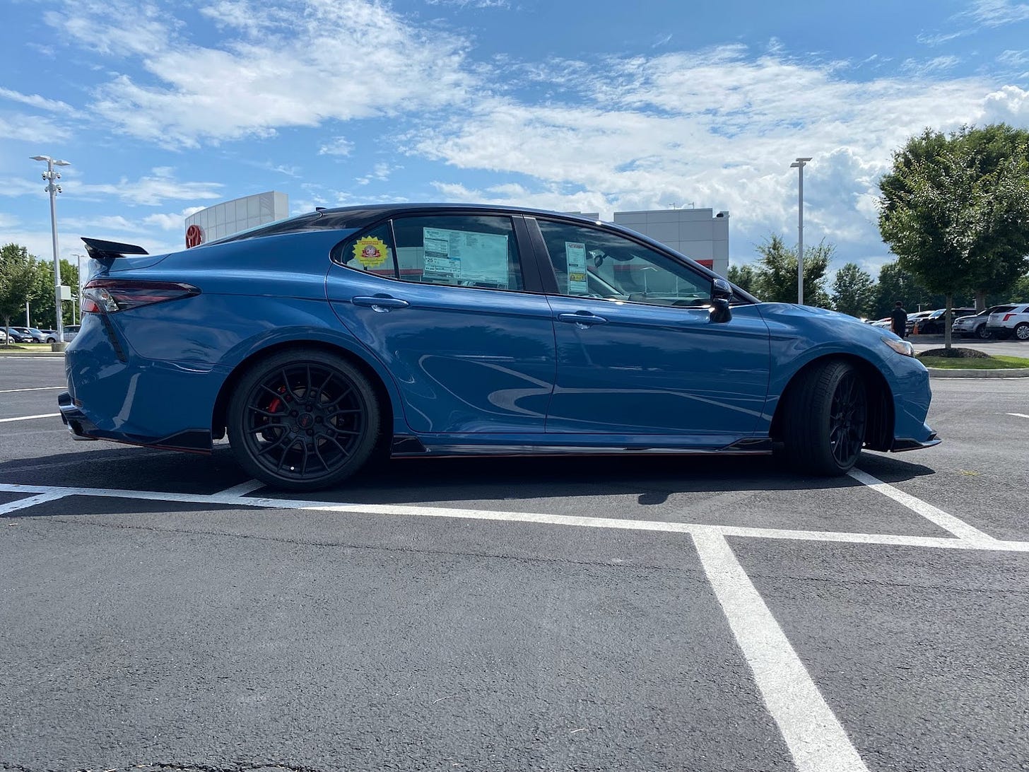 Let’s start on the outside. The single most obvious part of the TRD Camry is the gloss black rear spoiler. While it looks large in pictures, in reality, it’s no larger than that of an Elantra R. Accompanying the black spoiler are a set of black TRD rims, black round body trim including a front and rear splitter as well as side skirts, and a black roof that is part of the two-tone paint scheme on every TRD Camry. This particular model comes in Cavalry Blue, which again, looks suspiciously similar to the Hyundai N blue. Regardless, it still looks great even with the red accents that appear on various spots around the car. In short, it looks like a Camry went through a Forza Horizon 5 upgrade bin. I love it. There is no need for the TRD to look like this, and yet I couldn’t be happier that it does.