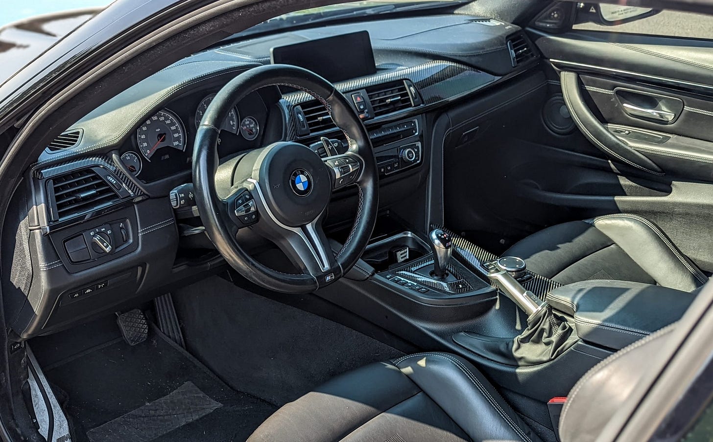 Power delivery is smooth, immediate, and immense. Holy hell, this thing is quick! I’m no stranger to fast cars, and I knew the stats of the M4 going into this – 425 horsepower, 406 pound-feet – I knew it would be fast, and boy-howdy, it sure was. I didn’t hoon on my local streets of Boise because that would be irresponsible, but a zero-60 time of 3.7 seconds, according to the renowned testers at Car and Driver, is certainly believable, even with this runt’s 60,000 miles.
