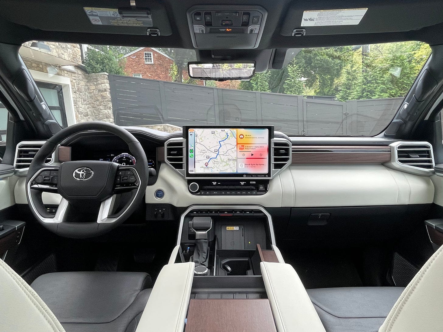 The i-Force MAX with the hybrid touts a 20 mile per gallon combined fuel economy rating on the Capstone. At first blush this would be a hefty, nearly 50%, improvement over the outgoing 5.7-liter V8’s rating of 14. However, in our week the observed fuel economy was a hair under 16 miles per gallon, a bit disappointing. That’s with a few unencumbered highway stints and largely little to no payload (my daughter almost 4 years old and hasn’t cracked 40 pounds yet). I know the phrase is your mileage may vary, but the i-Force MAX came up surprisingly short. Not sure how the Ford Powerboost folks have been seeing their real world hybrid full-size truck fuel economy figures.