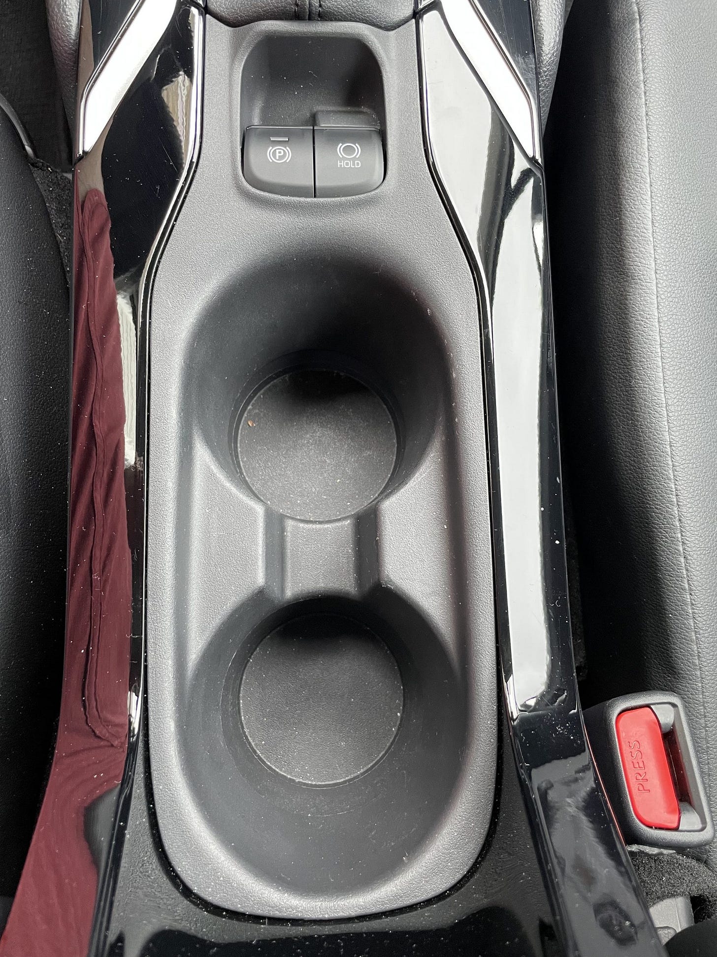 Inside there’s a big cluster screen in the XLE and it is nice and crisp, with plenty of information and easily accessible through the steering wheel controls. The Corolla Cross, particularly our top spec XLE, really has everything you need and nothing you don’t. Glad to see Toyota make rear heat and A/C vents standard on even the base Corolla Cross L, something always missing in the compact sedan segment. We had a nice power driver seat, heated front seats, power rear lift gate, a sunroof, the optional JBL sound system, wireless phone charger and even front and rear parking sensors. So many mainstream brands only provide rear parking sensors if any at all. Only initial gripe – cupholders up front don’t have any sort of lining/rubber mat, and they don’t have any spring-loaded tensioners to help keep drinks snug.