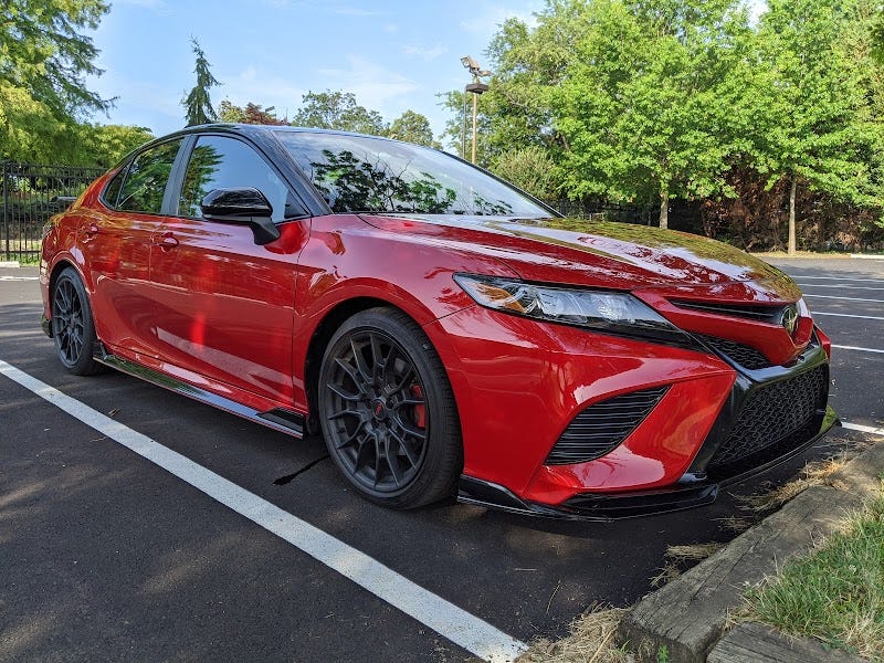 My Camry story is that I actually didn’t have one in the family until my first job at Toyota, 10 lifetimes ago. It was a 2012 SE V6. Smooth, powerful V6, but a bit uninspired in terms of any actual handling or ride control. Flash forward a few generations and it brings us to the hero of our story, the 2020 Camry TRD. Like many in their mid to upper 30’s, the Camry seems to have found a crossfit gym and is sleek, toned and buttoned down for it. No #dadbod here, except maybe the one driving it.
