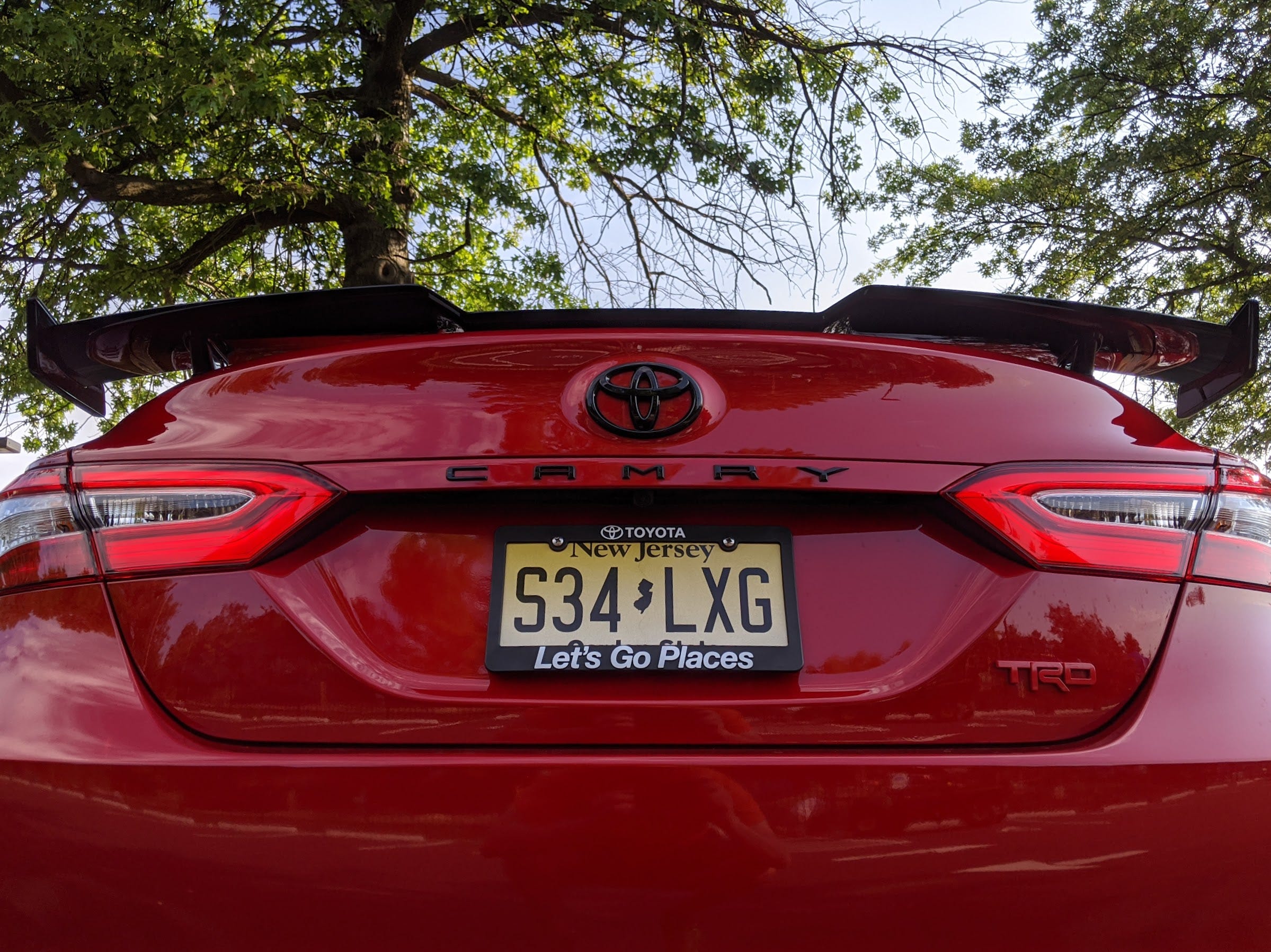 Where the Camry TRD does deviate from its brethren is the way it handles itself. Benefitting from unique springs (which do lower the car ever so slightly) and sport shocks and added bracing to help with overall rigidity, there’s a sharpness and noticeable decrease in slop when putting the Camry through some enthusiastic paces. Dare I say… enjoyable? Bigger brakes with added stopping power are also direct without being overly grabby around town. These brakes with their red calipers are tucked behind lovely looking matte black wheels. The extra burble of the TRD specific cat-back exhaust is also well-matched with the persona of the car without being obnoxious. The vehicle is responsive without being heavy handed, and wonderfully capable while still comfortable to drive day in and day out. I think this shows some of the best execution of their new TNGA platform that I’ve seen yet, it’s just a bit sad that it’s relegated to a limited production iteration.