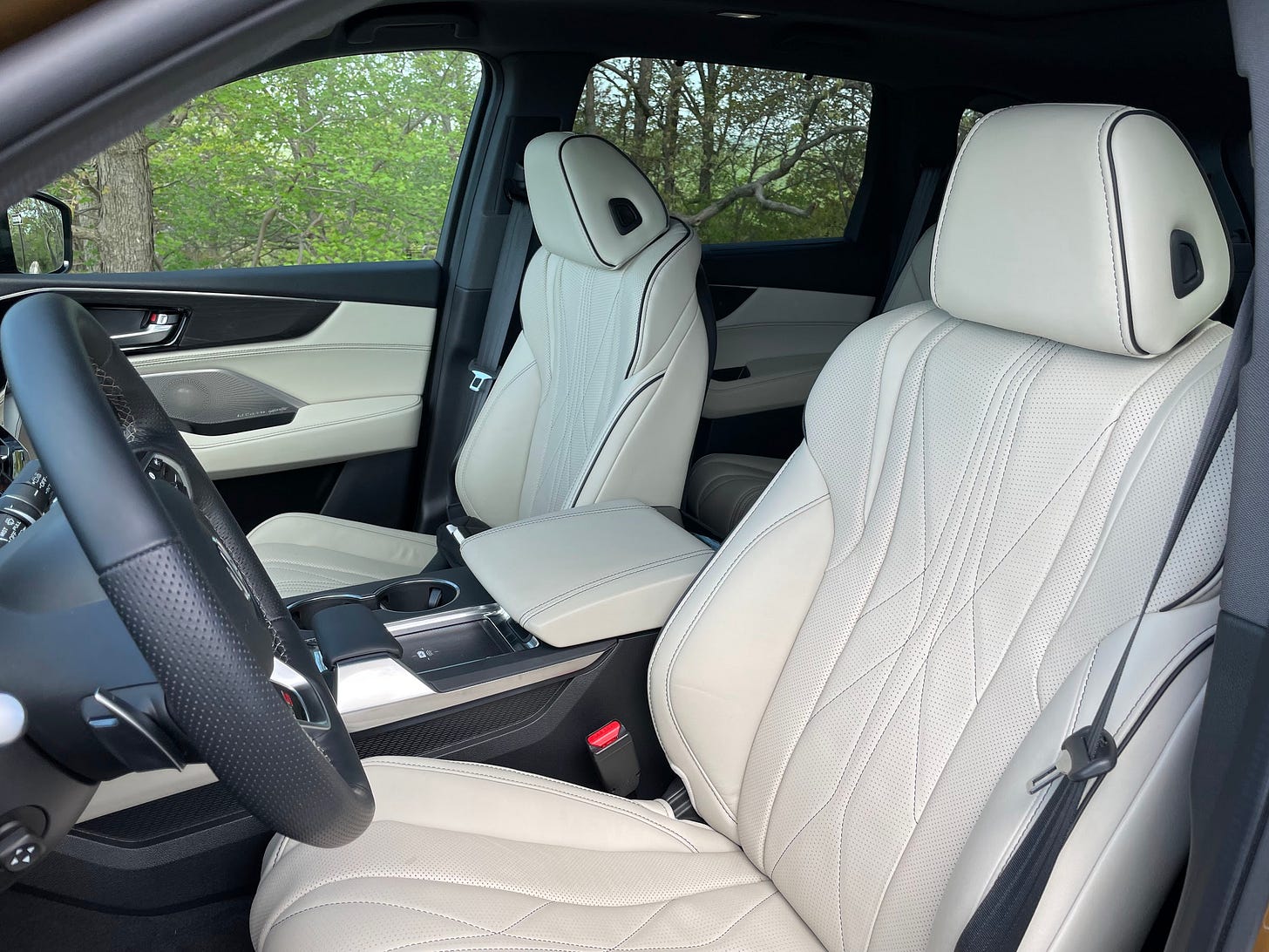 From the first minute, the Type S seems to solve the qualms around the MDX and its family hauler persona. Everything feels sharper and alert. Power, where a bit lackadaisical in the standard model, swells and flows through a rapid shifting transmission here. Ride refinement is also elevated, smooth yet controlled and not floaty, thanks to the air suspension, mitigating much of the harshness of the massive 21″ wheels. Kudos to Acura on making the investment there. Where the MDX might be chided as being a bit “Honda +”, the Type S feels like it finally places Acura into the luxury realm, or at least into the performance sector. Handling is responsive and rewarding making this 3-row family hauler feel nimble, and brakes are nice and tight, helping this 3-row crossover shrink around the driver.