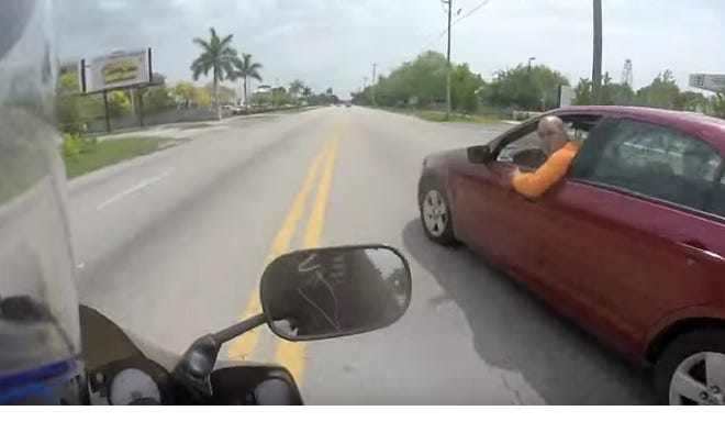 Remember the Roni Gonzalez incident in Florida? Ron the biker on this video illegally filtered through lanes and this seemingly angered the driver of the Ford Fusion who overtook him back aggressively, most of us would have wisely put some distance between the Ford driver and ourselves right? You just don’t stick near a nutjob willingly.
