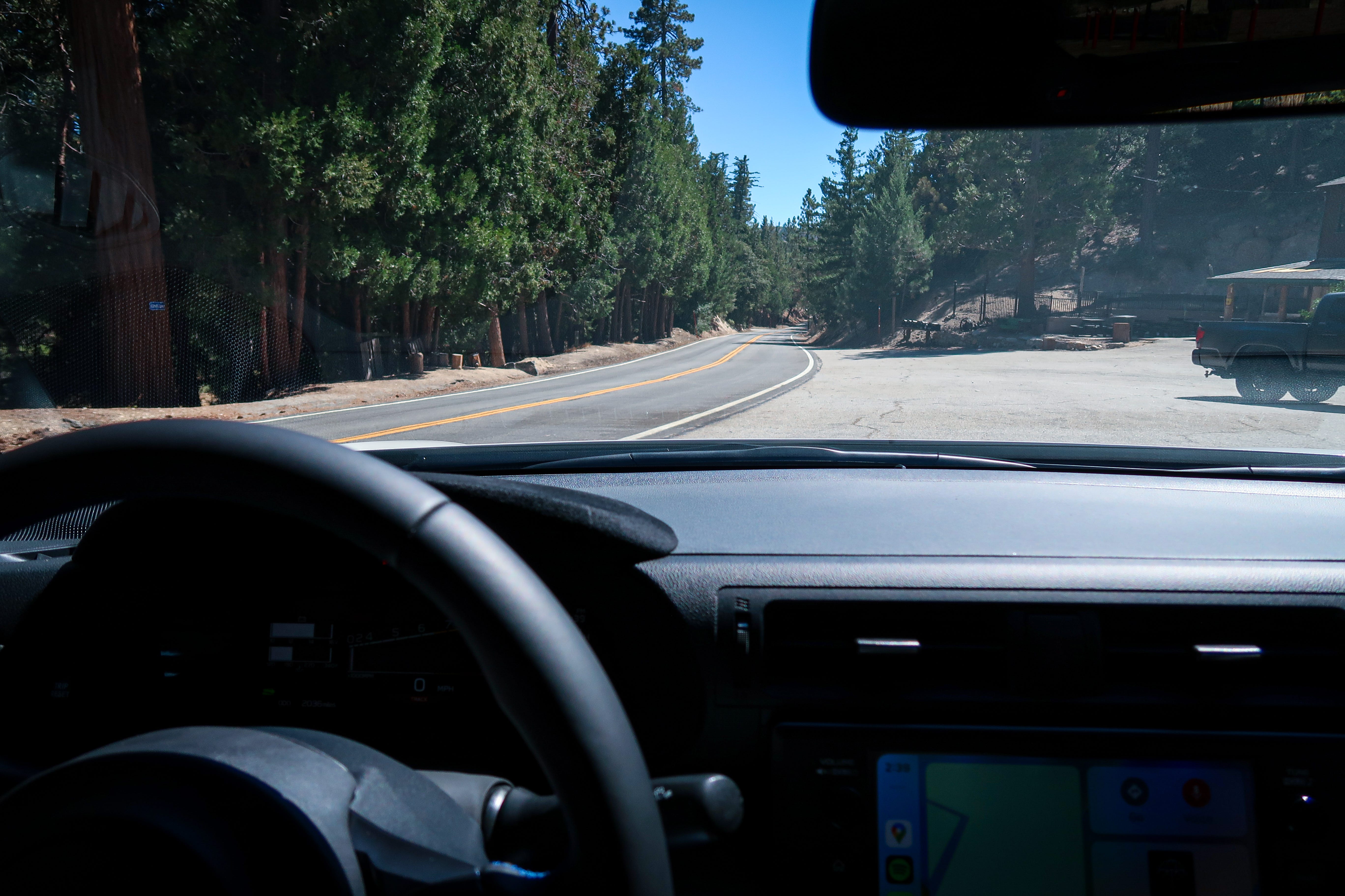 Foot down. Rev! Rev! Rev! Nearly 7,400 rpm as the shift light glows yellow, then flashes red in the gauge cluster. Grab the next gear before the fuel cut strikes and do it all again. You can probably grab fourth for only a second or two on Glendora or the upper half of Azusa Canyon before slamming on those firm, tireless Brembos. Turn in quickly but delicately, and let the car confidently lean in and take a set around the carousel-like bend before the FA24 rockets you towards the next. Rinse and repeat.