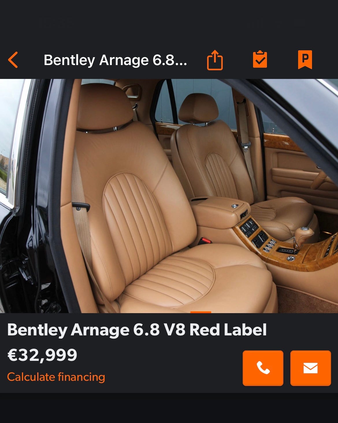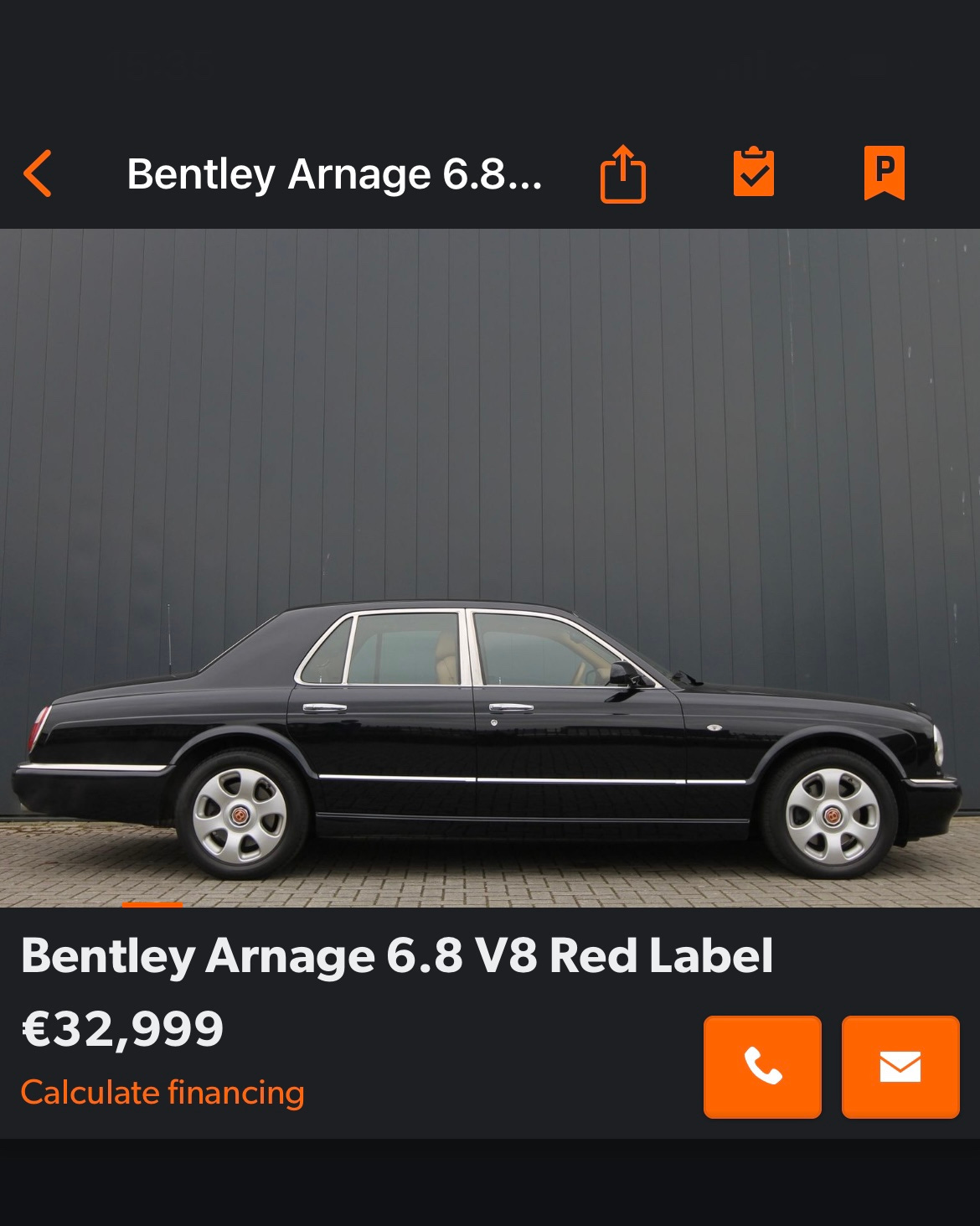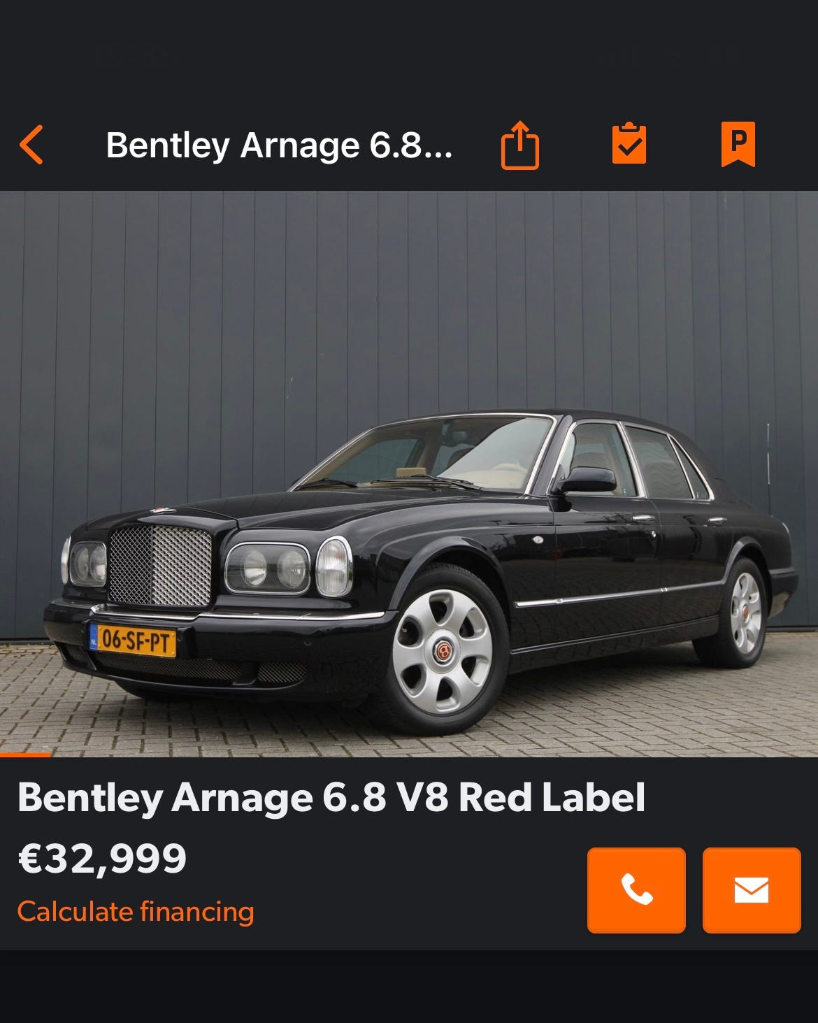 Back in the day, an Arnage would have been a very expensive car to buy. The Bentley Arnage still looks expensive today, except nowadays if you want to get your hands on an Arnage, it is possible to buy one for around the same price as a brand new Volkswagen Golf! There are many Bentley Arnage examples listed for sale on the Mobile.de app, some of which are listed for under 30 thousand euros. The example below has 121,000 km and is listed for 32,999 euros.