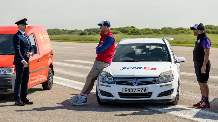 Deliveries are big business right now, but what if you want to get into the parcel game on a budget? Chris, Freddie and Paddy each buy a van on the cheap, and set out to tackle Top Gear’s patented Real World Delivery Driver Obstacle Course Complete With Fearsome German Shepherd.