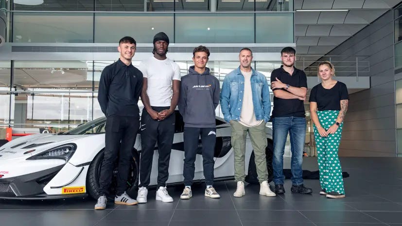 In just two months, can Paddy take four young motorsport enthusiasts, and get them up to professional race standard, ready to drive a McLaren at Donington in the GT Cup? Time to call in some help from… Lando Norris.