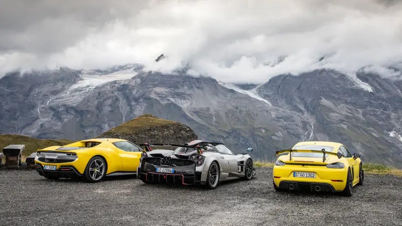 Just the trio, then, for a night time charge down a derestricted section of autobahn, and a final ascent of Austria’s jaw-dropping Grossglockner Pass. Tough, day, office, etc.